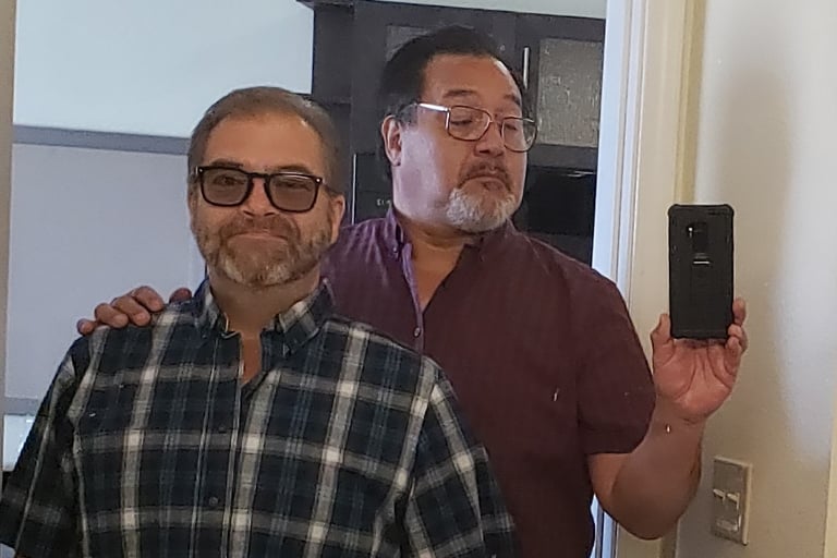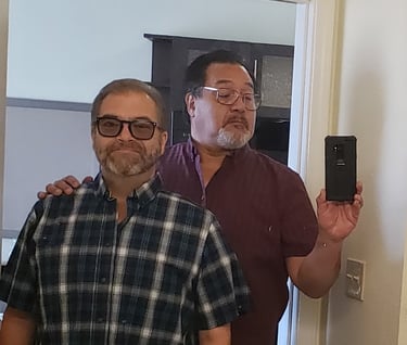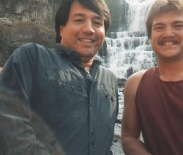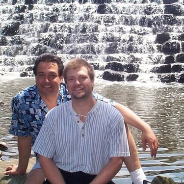 Charlie and me at Chittenango Falls in New York and then us in Alexandria, Louisiana for the wedding of my nieces son. And no, I have not learned how to do a mirror selfie.